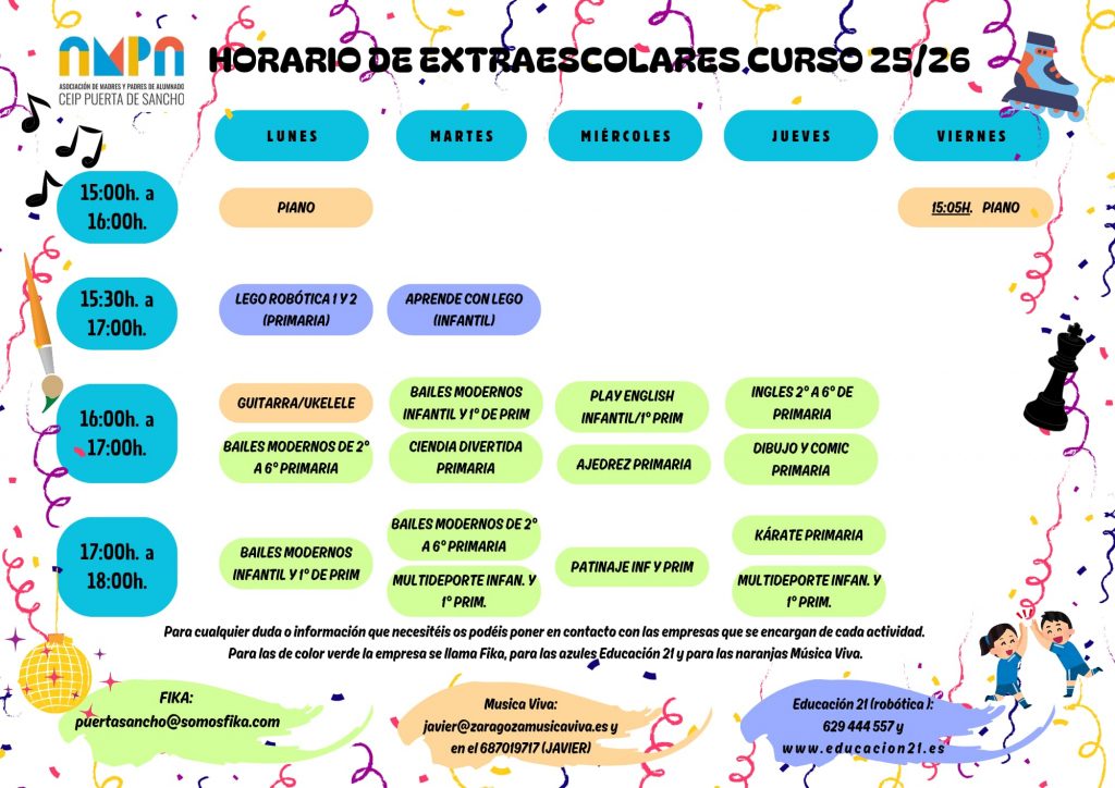 Esta es la oferta provisional de las extraescolares para el próximo curso.